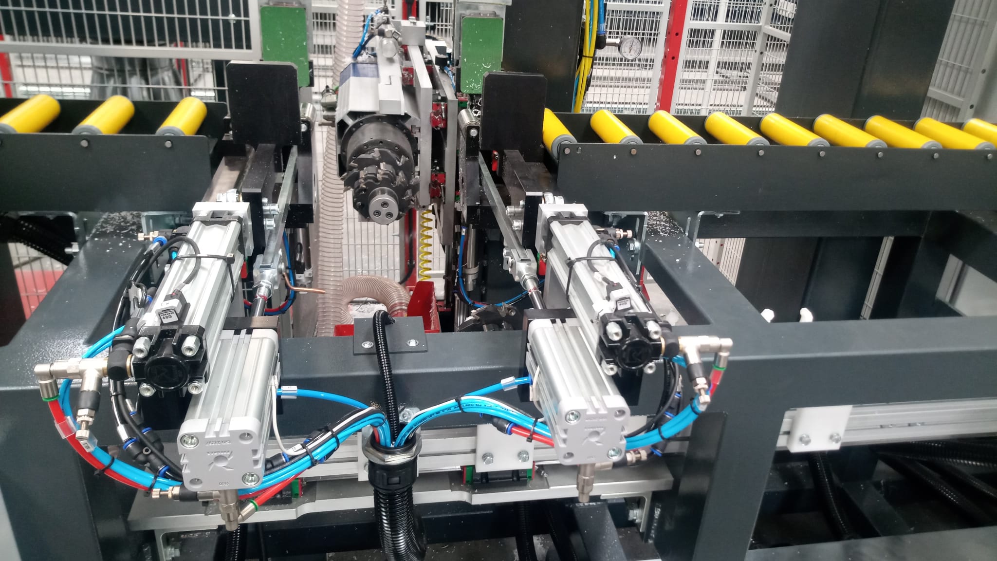 L’unité est équipée d’un magasin automatique CNC pouvant contenir jusqu’à 5 groupes de fraises (erronément indiqués comme 8 dans certains textes), avec un système de changement d’outils géré par commande automatique. Chaque groupe est dédié à des opérations spécifiques et est sélectionné de manière dynamique en fonction du profil d’entrée.