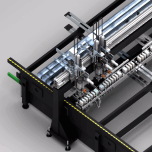 ESU est la station CNC Graf Synergy dédiée au vissage automatique des renforts métalliques à l’intérieur des profils en PVC. Elle s’intègre directement dans le flux de production, travaillant en ligne avec la table dynamique et les centres de découpe et d’usinage, afin de réaliser le fixation des renforts en un temps record.