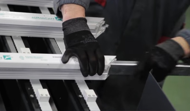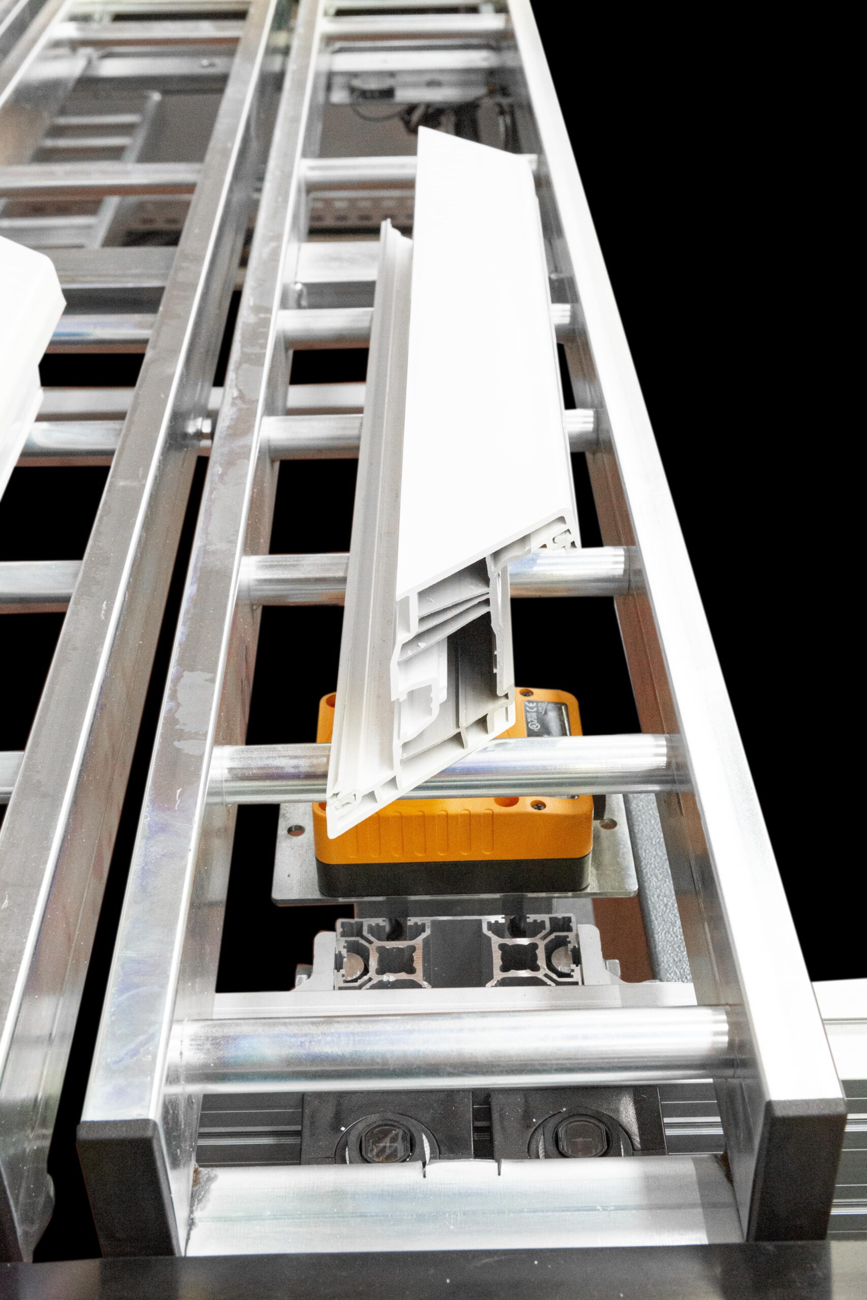 Unité de liaison automatisée pour lignes de menuiserie en PVC avec renfort métallique
